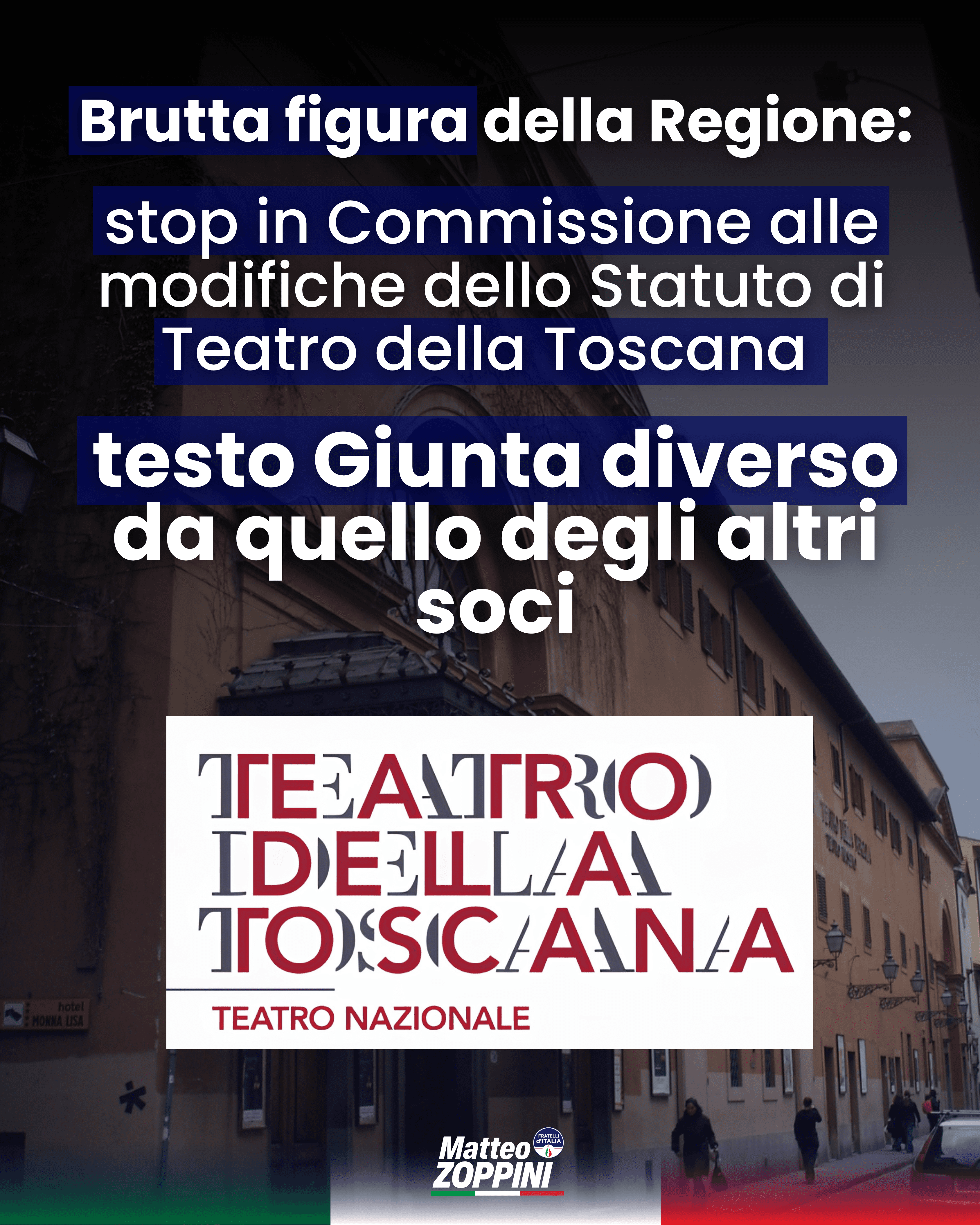 Incredibile. La Giunta regionale porta in Consiglio discutibili modifiche allo Statuto della Fondazione ma non si accorge che il testo è diverso da quello approvato dagli altri soci. Parere rinviato alla prossima seduta. Una pessima figura, ma del resto non c’è meravigliarsi, vista l’assenza sistematica dell’assessore Manetti. Presa com’è dal suo tour promozionale non si è mai presentata in Commissione, evitando di mettere la faccia su provvedimenti anche rilevanti. Visto quel che è successo oggi c’è da capirla.